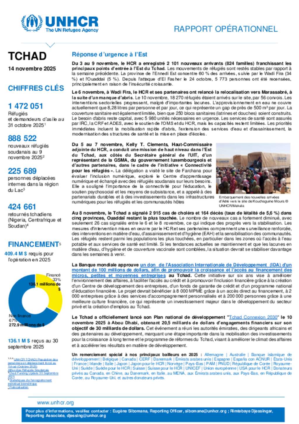 HCR TCHAD | Rapport opérationnel hebdomadaire du 14 novembre 2025