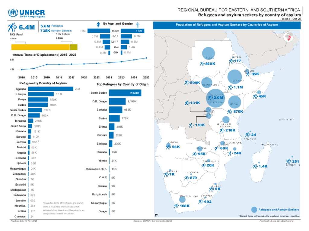 Regional Dashboard RBESA: Refugees and asylum-seekers by country of asylum as of 31 October 2025