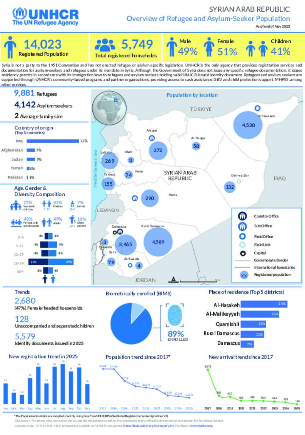 Overview of Refugee and Asylum-Seeker Population in Syria (As of 30 Nov 2025)