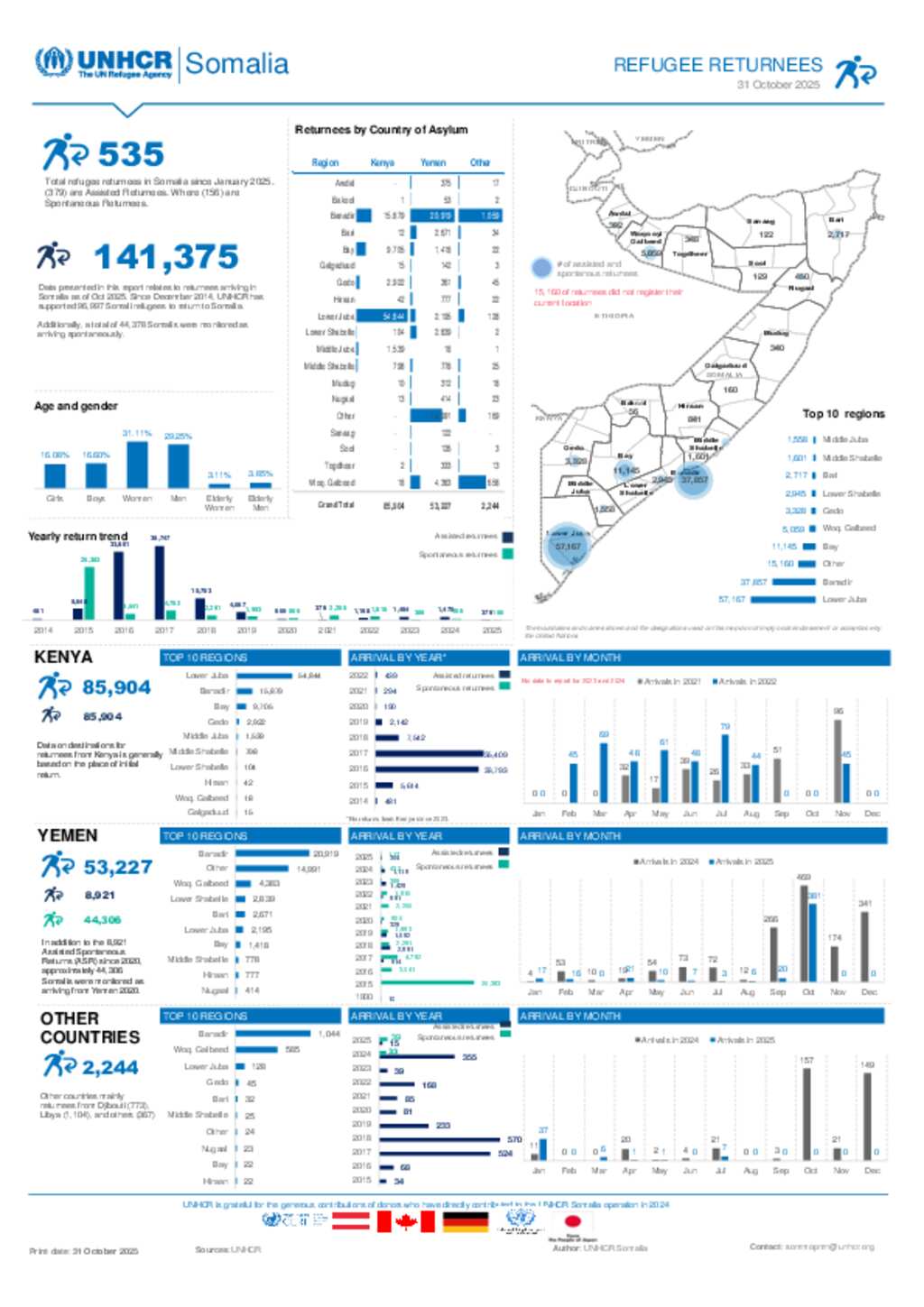 UNHCR Somalia Refugee Returnees Dashboard - Oct 2025