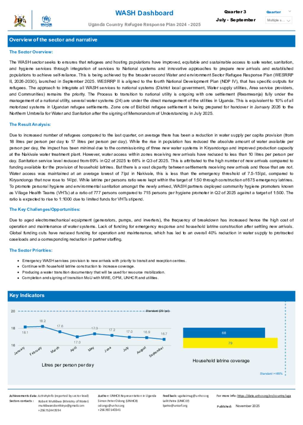 Uganda Refugee Response: WASH dashboard Quarter 3 2025
