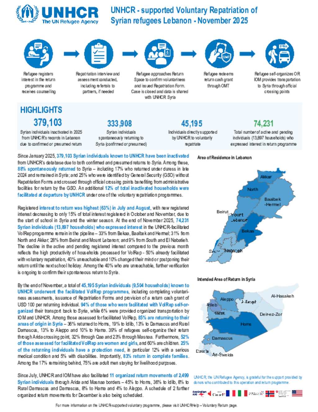 Voluntary Repatriation Programme - Lebanon, 30 November 2025