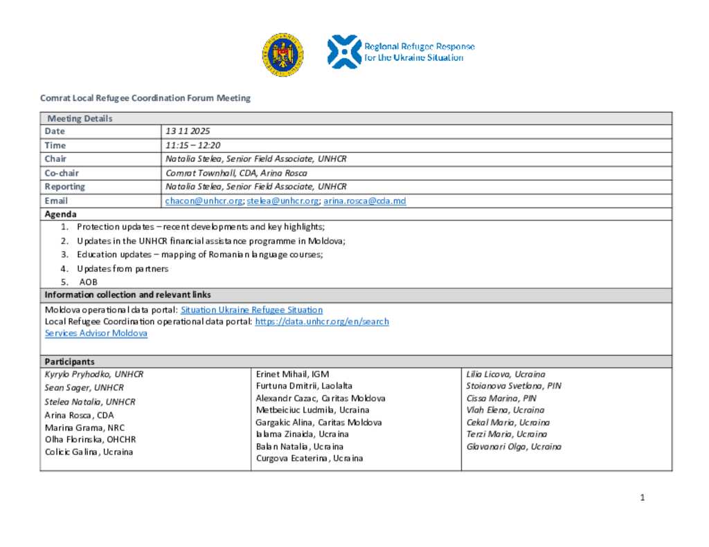 Ukraine Situation - Moldova: Comrat Local Refugee Coordination Forum Meeting Minutes (13 November 2025)