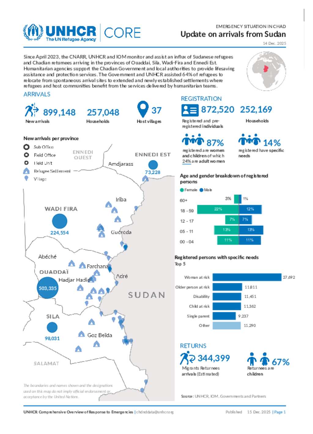 UNHCR CHAD| CORE Sudan Emergency Situation (14 Déc. 2025)