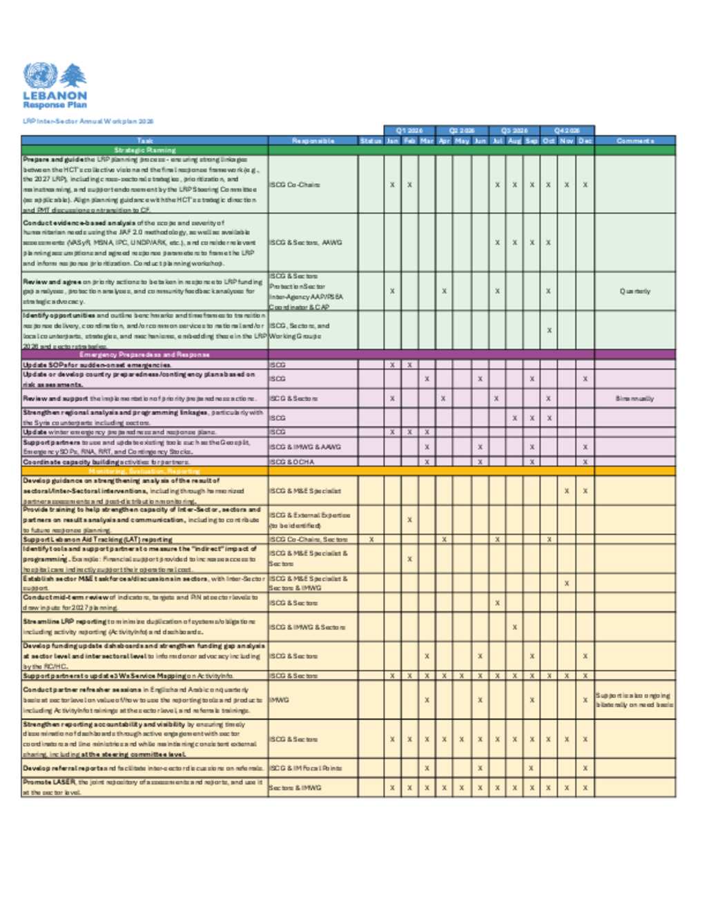 Lebanon: Inter-Sector Annual Workplan - 2026
