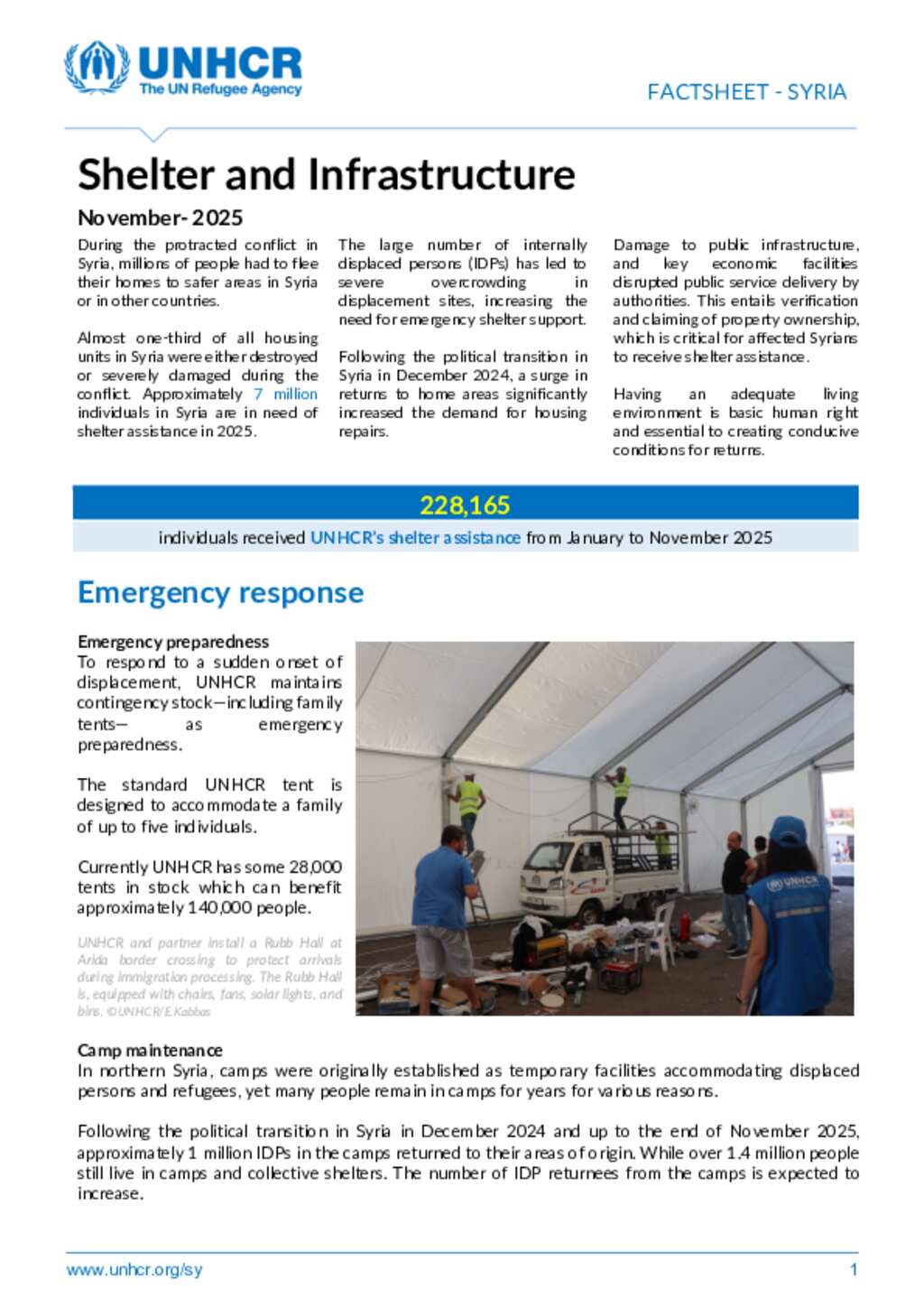 UNHCR Syria Factsheet 2025, Shelter & Infrastructure