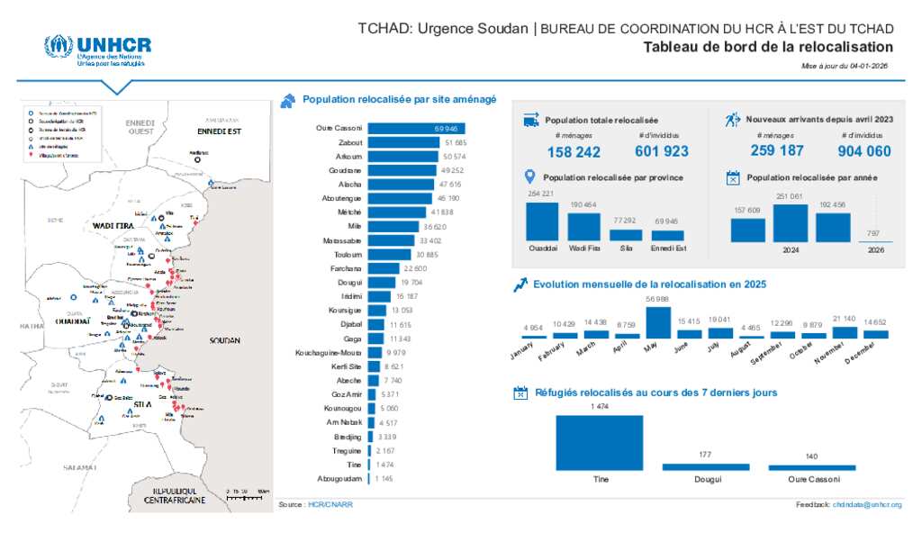 UNHCR TCHAD| Tableau de bord de la relocalisation(04 jan. 2026)