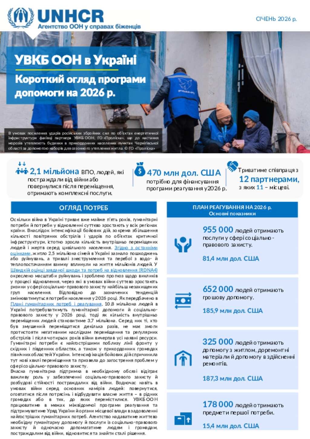 УВКБ ООН в Україні: Короткий огляд програми допомоги на 2026 р.