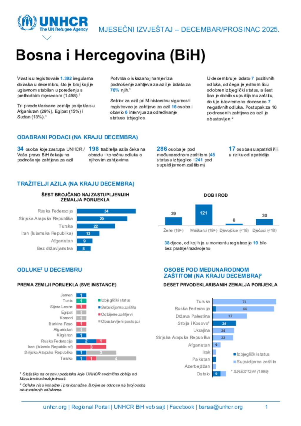 UNHCR Bosnia and Herzegovina monthly update - December 2025 (B/C/S version)