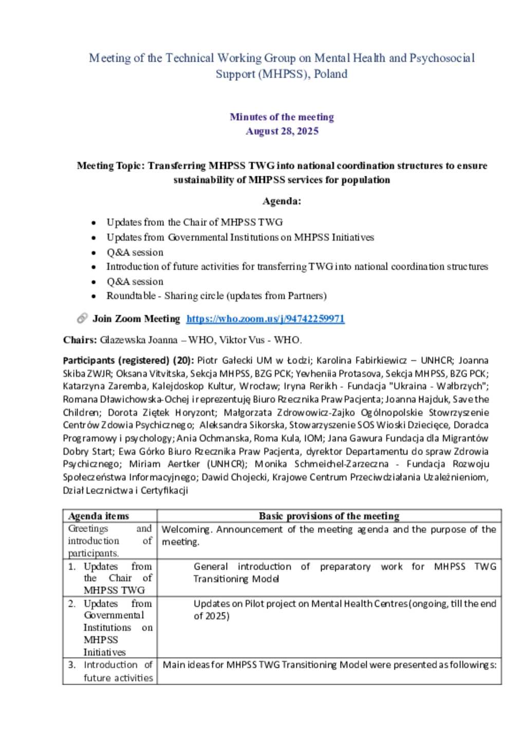 Poland: MHPSS TWG- meeting minutes (28 August 2025)