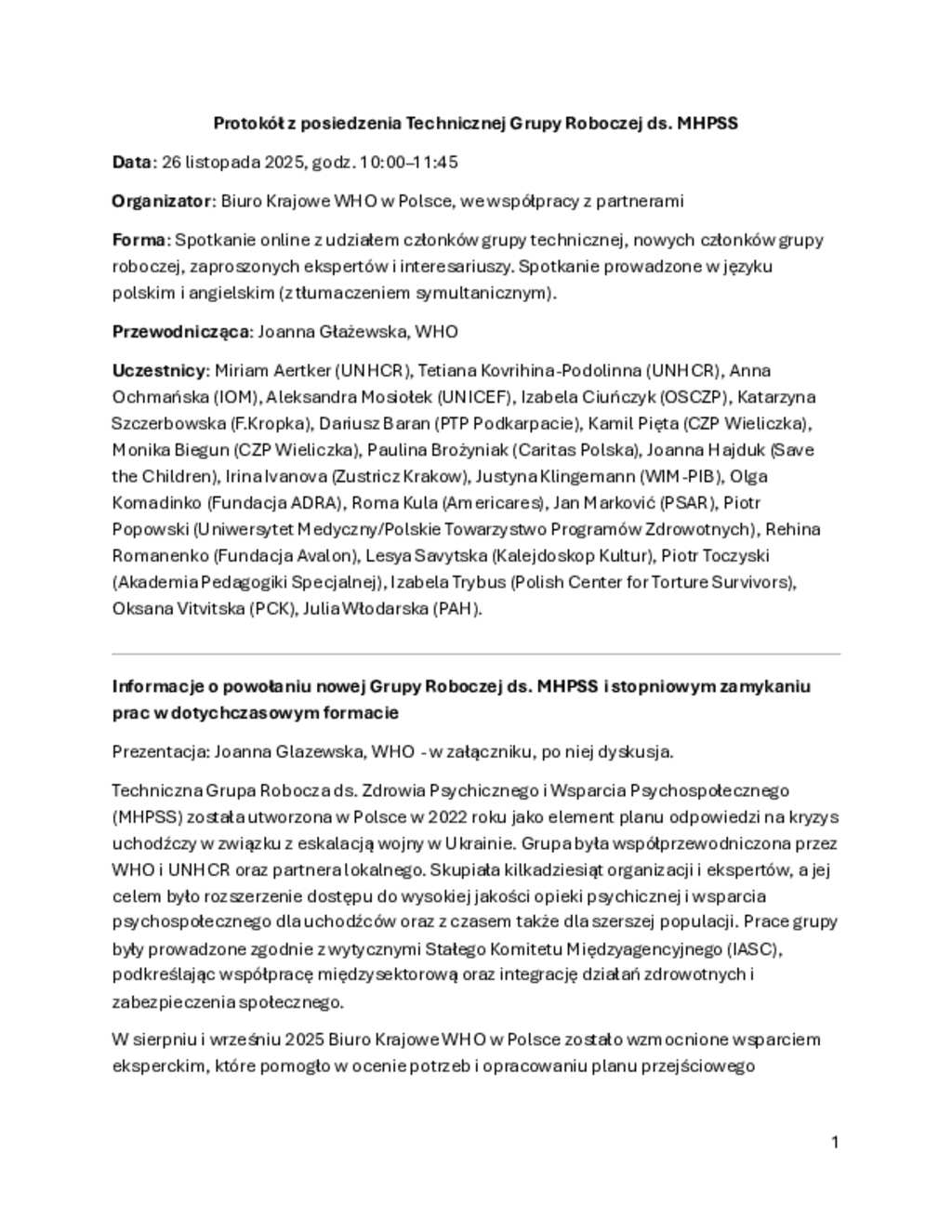 Poland: MHPSS TWG- meeting minutes (26 November 2025)
