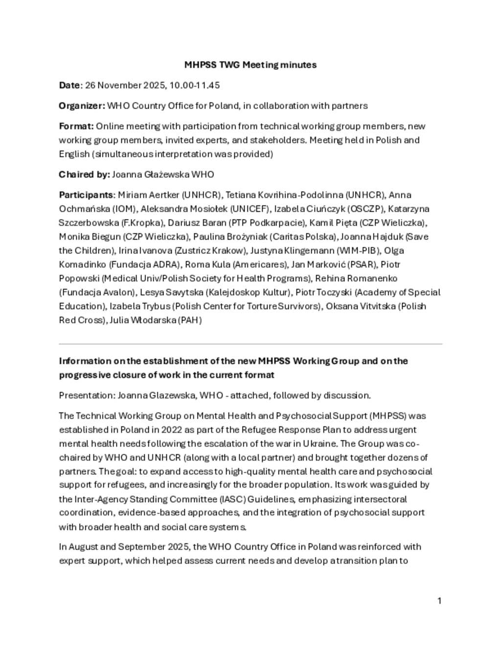 Poland: MHPSS TWG- meeting minutes (26 November 2025)