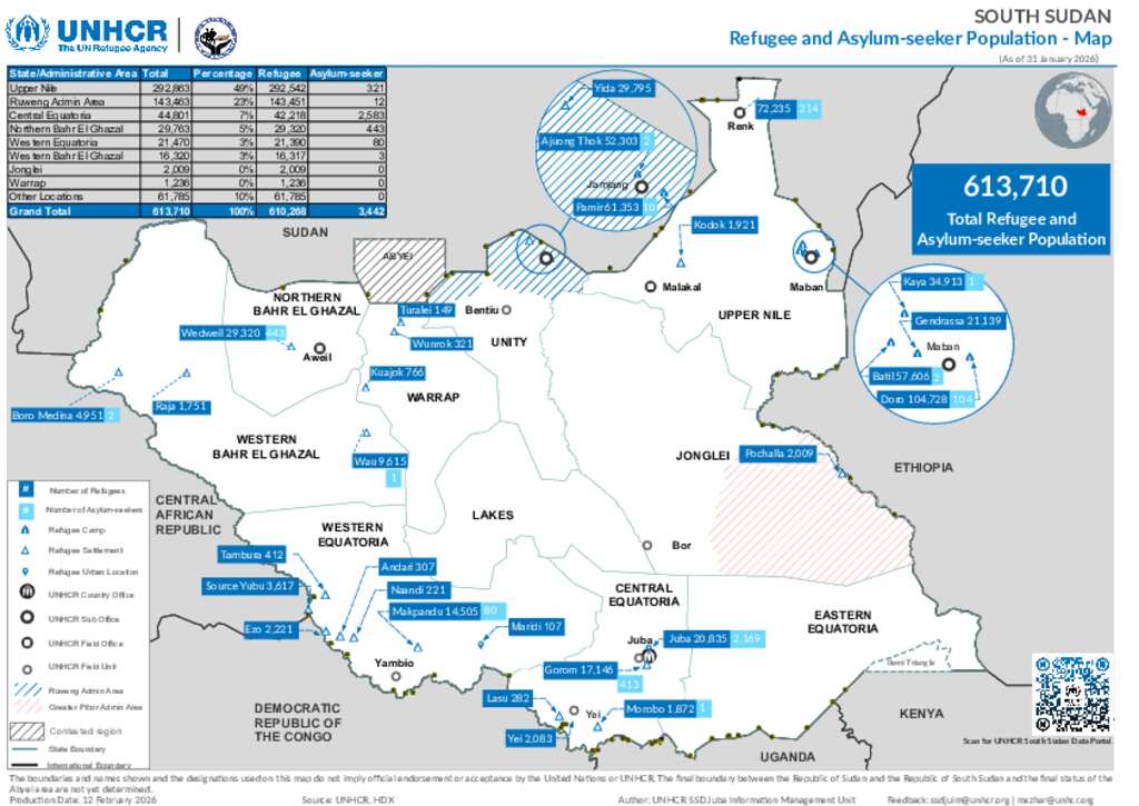 South Sudan - Refugee and Asylum-seekers Population - 31 January 2026