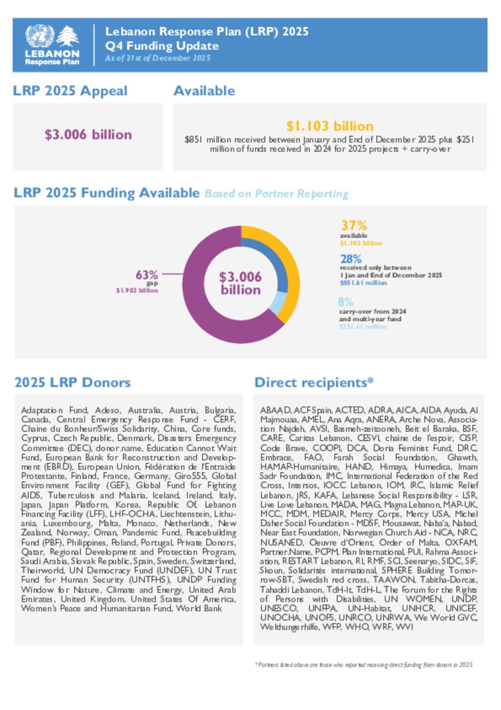 Lebanon Response Plan Funding Update - Q4 2025 (As of December 2025)