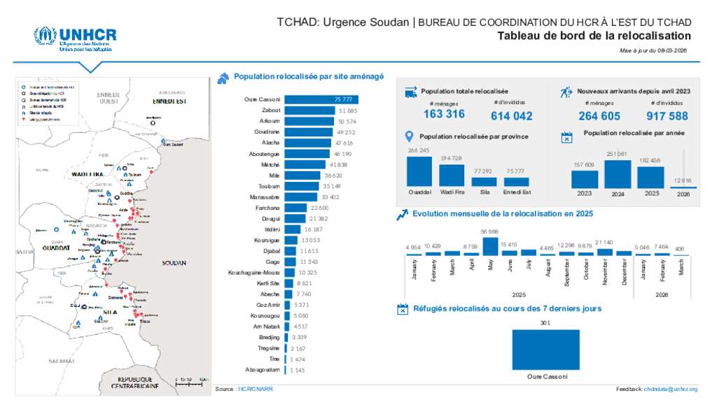 UNHCR TCHAD| Tableau de bord de la relocalisation(08 mars 2026)