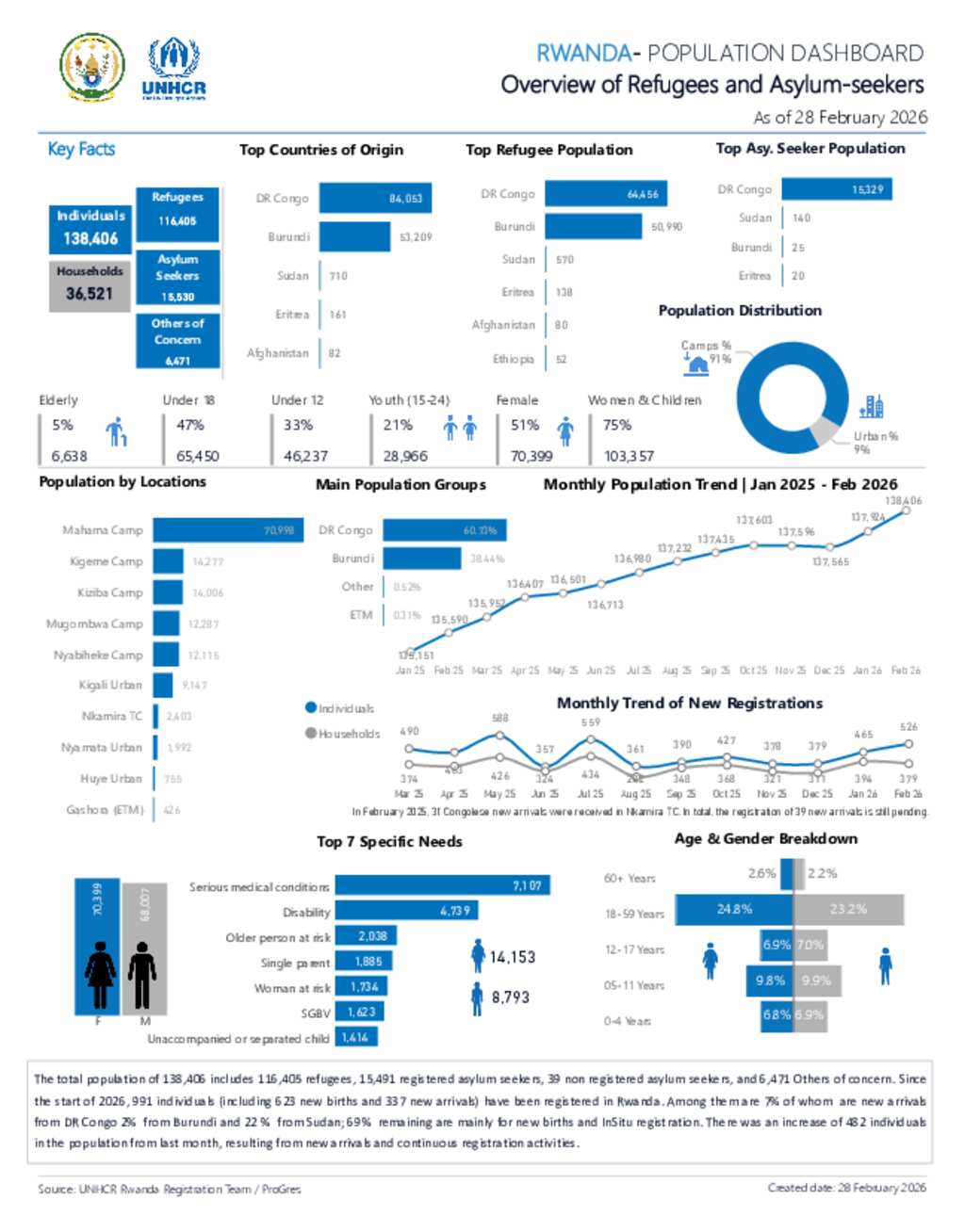 UNHCR Rwanda - Population Statistics Dashboard - 28 February 2026