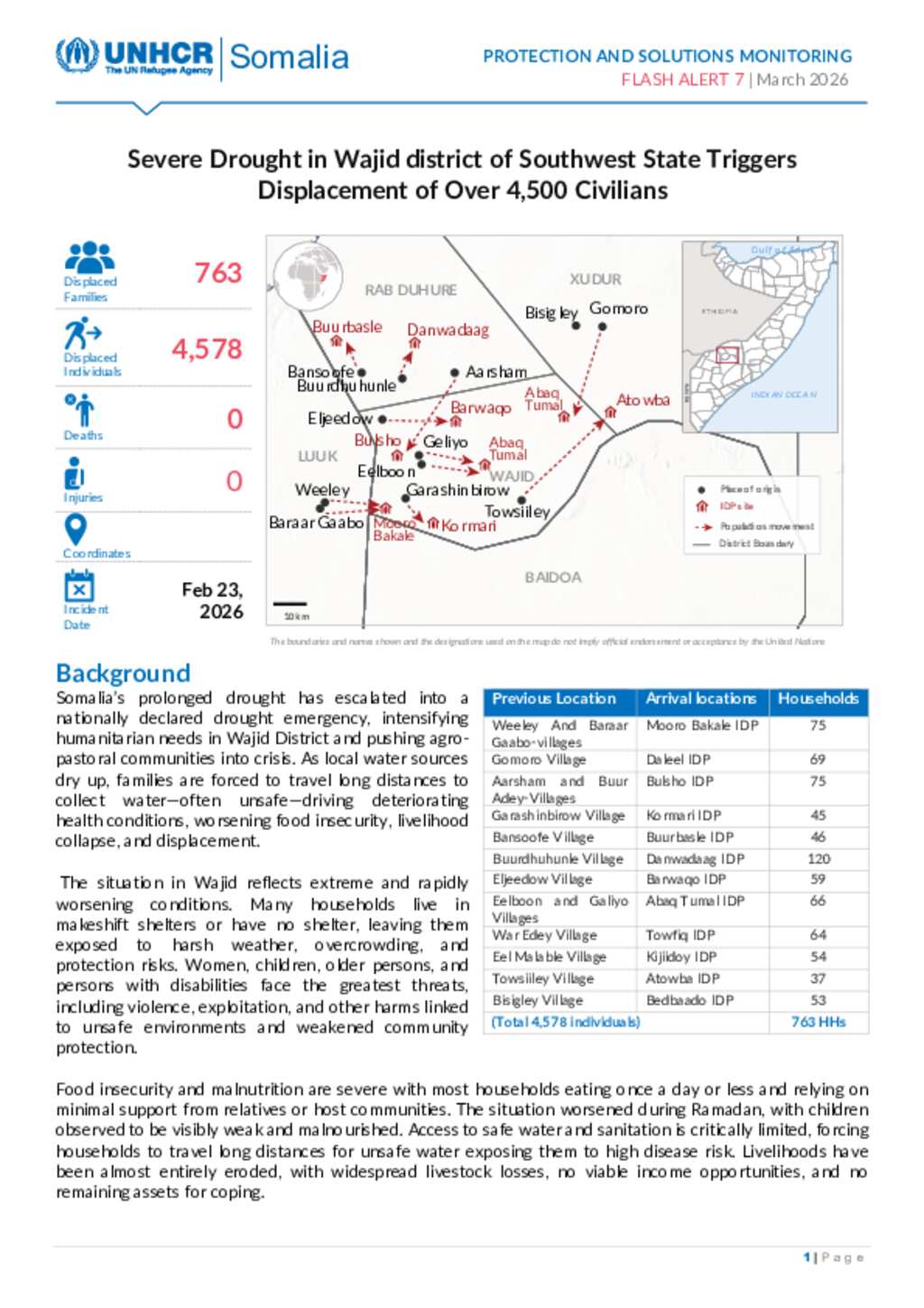 Flash Alert #7 Severe Drought in Wajid District_Southwest State Triggers Displacement of Over 4,500 Civilians