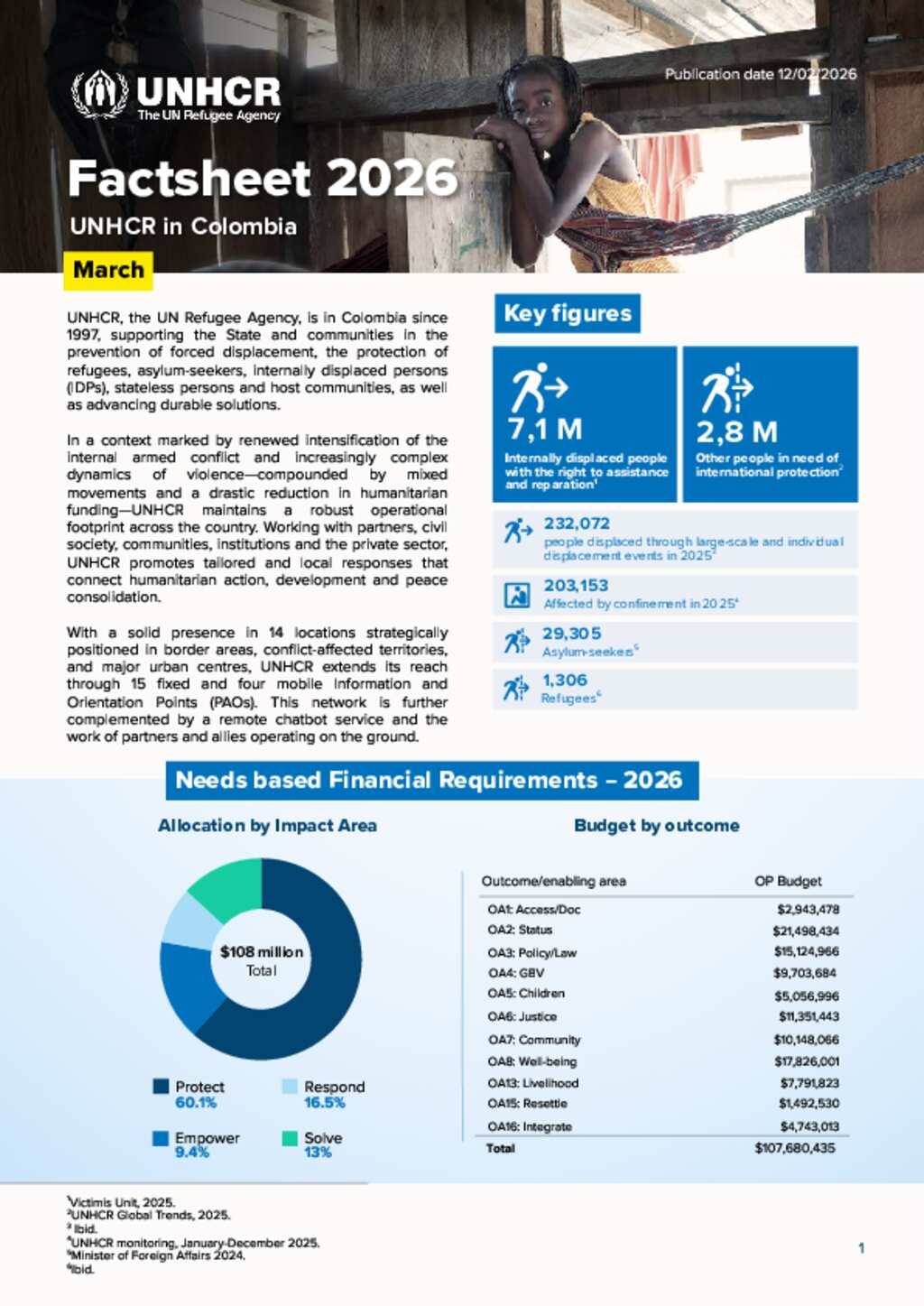 UNHCR Colombia | Factsheet 2026