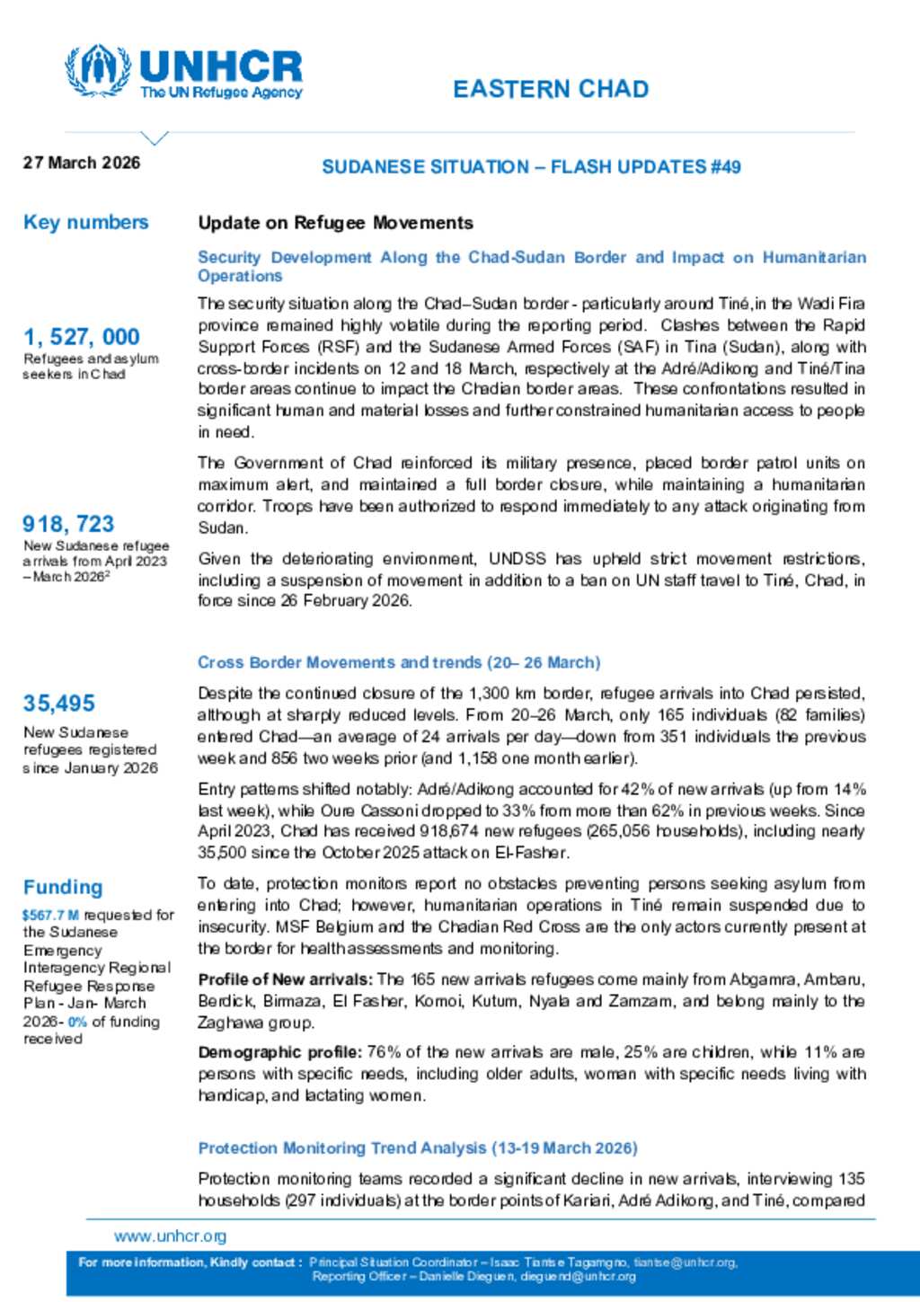 Flash Update #49 New Sudanese Refugee Influx into Chad