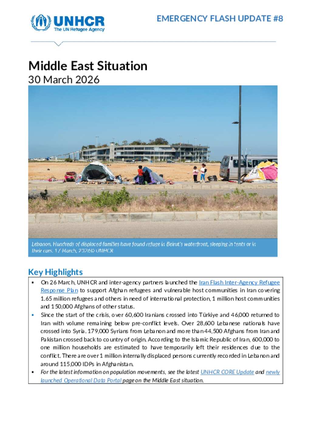 UNHCR Middle East Situation: Emergency Flash Update #8 - as of 30 March 2026