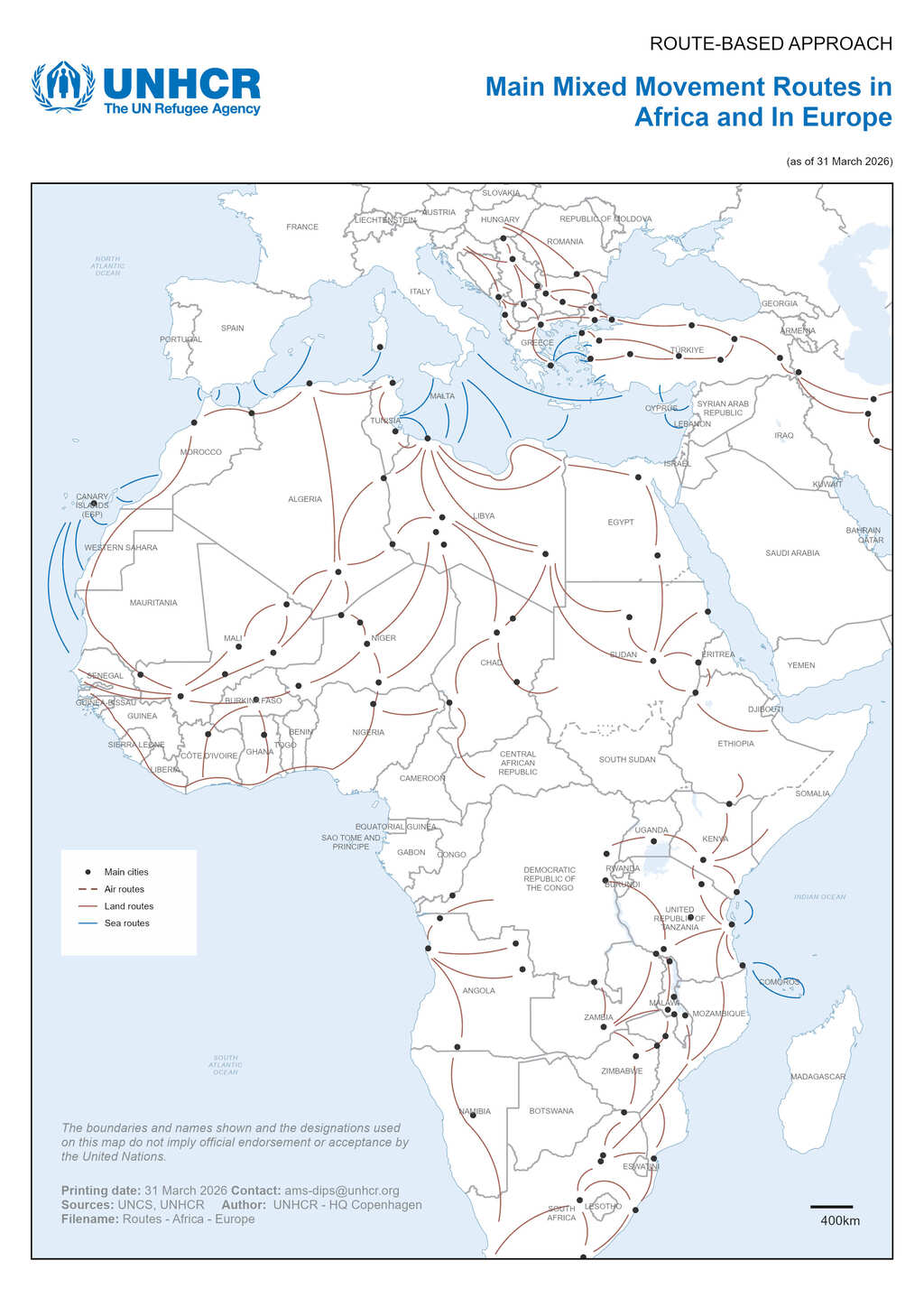 Map of Mixed Movement Routes - Africa and Europe Highlight