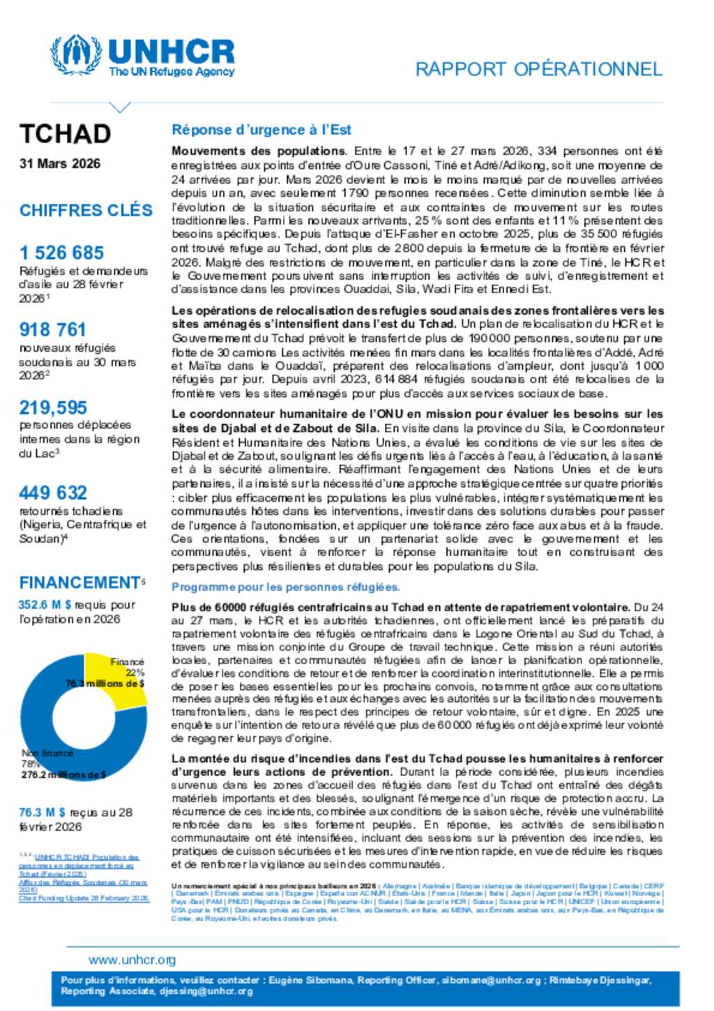 HCR TCHAD | Rapport opérationnel hebdomadaire du 31 mars 2026