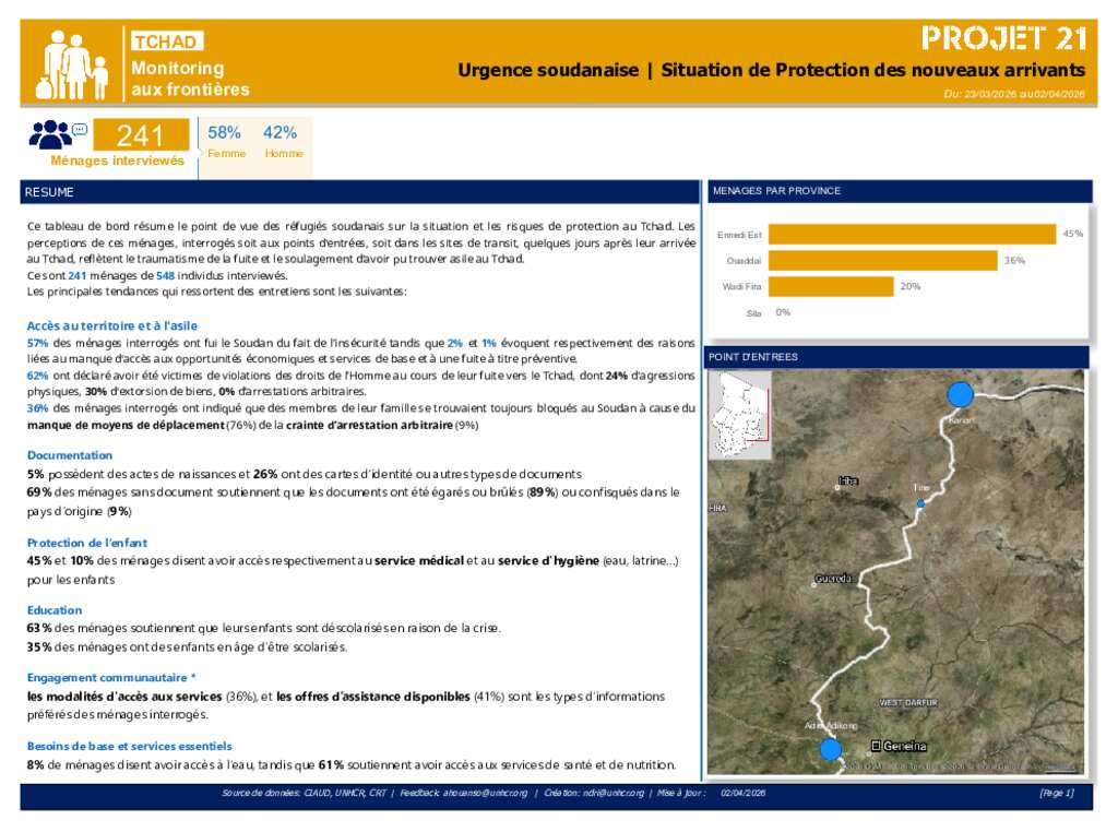 P21 - TCHAD | Dashboard Résultats Préliminaires Monitoring Urgence soudanaise (20 Mars - 02 Avril 2026 - FR)