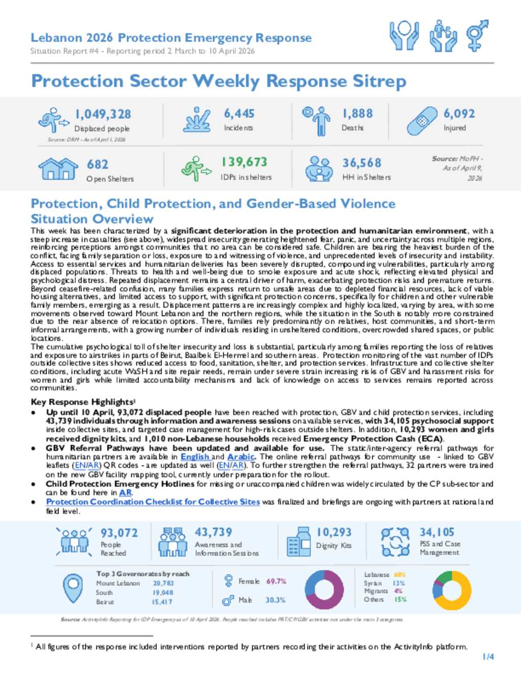 Lebanon: Protection Sector Weekly Response Sitrep #4