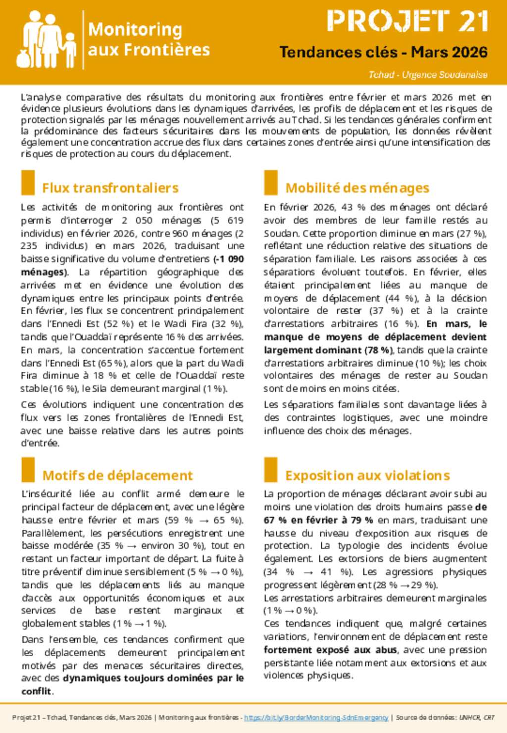 P21 - TCHAD | Rapport Mensuel Monitoring aux Frontières _OnePage (Mars 2026 - FR)