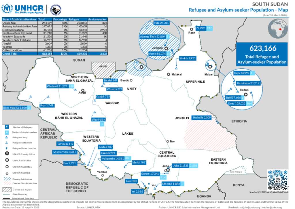 01 - South Sudan - Refugee and Asylum-seekers Population - 31 March 2026