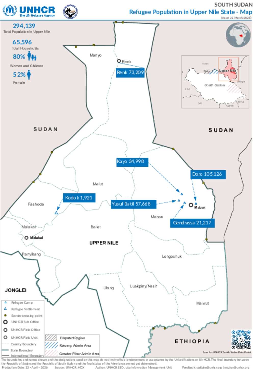 02A - South Sudan - Refugee Population in Upper Nile State - 31 March 2026