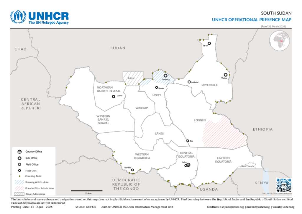 05 - South Sudan - UNHCR Operational Presence Map-31 March 2026