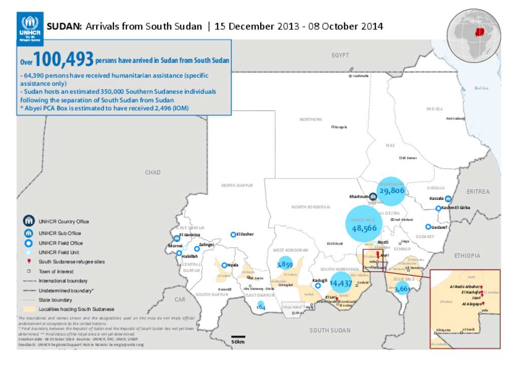 New Arrivals from South Sudan to Sudan (Map) 8th October 2014