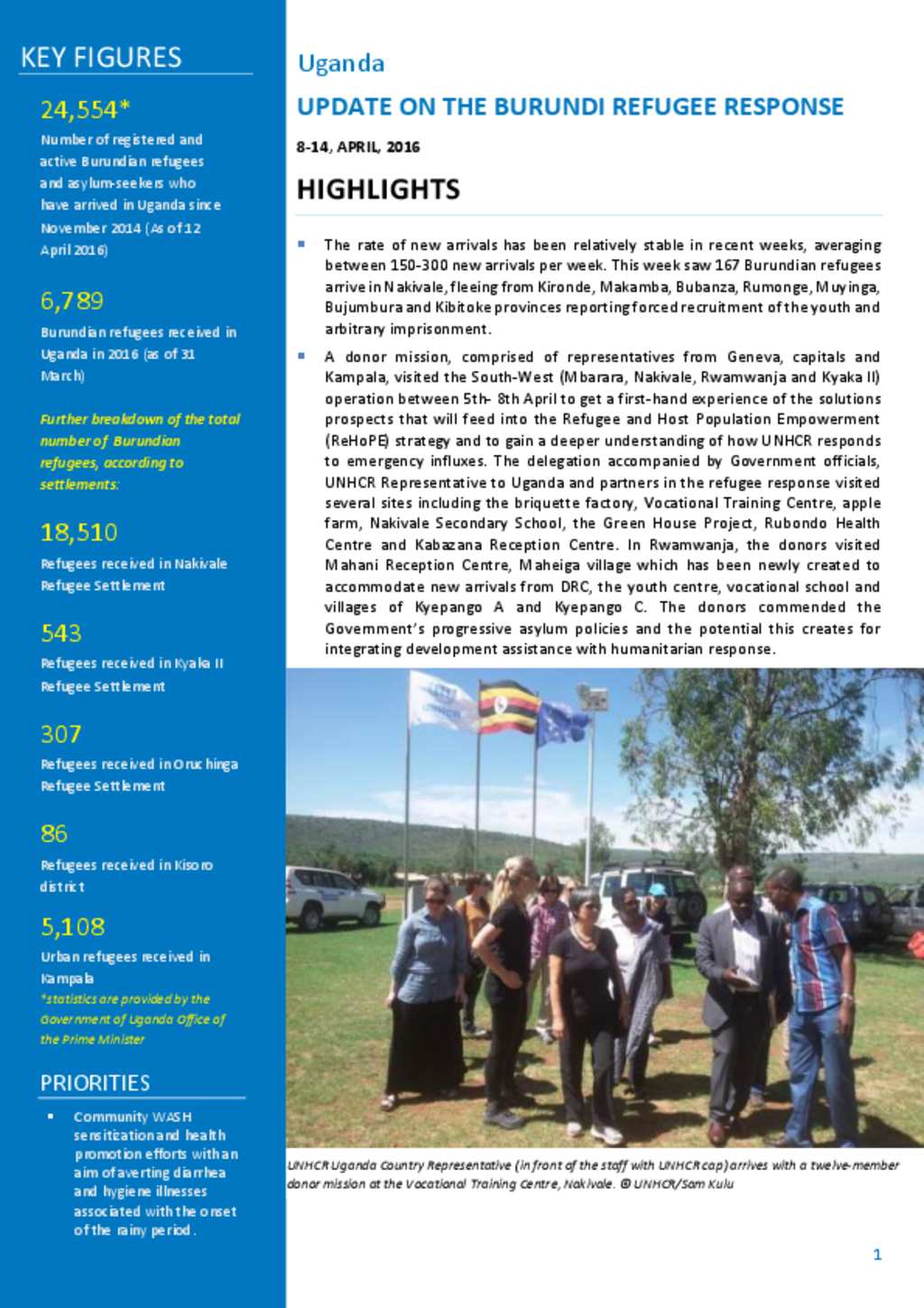 UNHCR Uganda operational update for the Burundi emergency April 8-14 2016