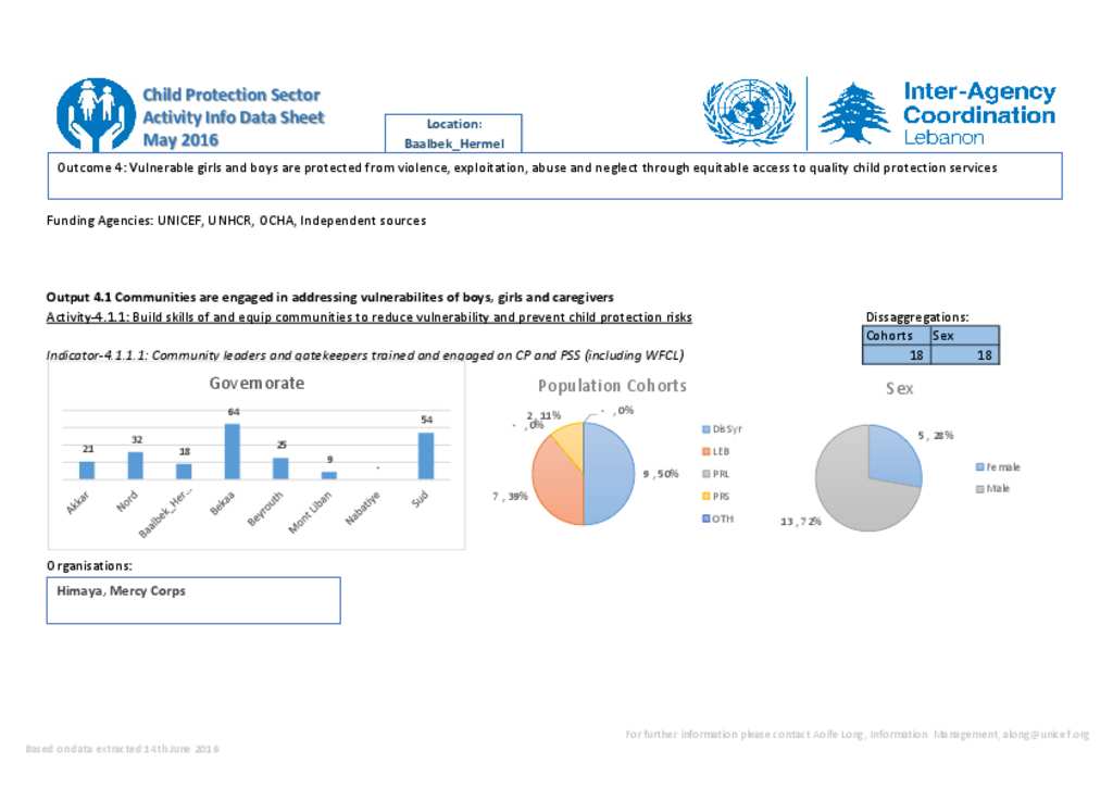 Interagency - Baalbek-Hermel - Child Protection - Data Sheet - May 2016
