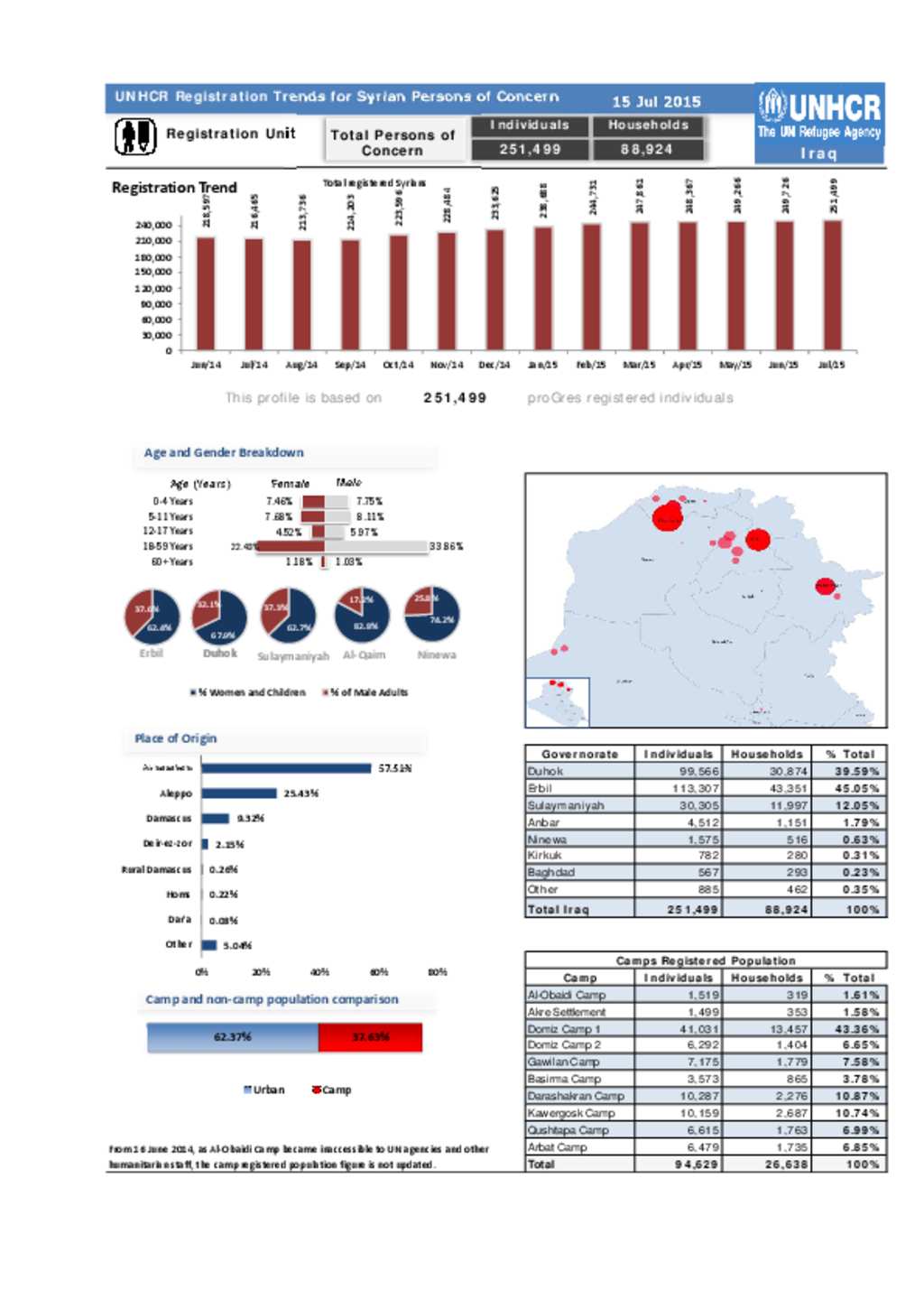 IRQ Syrian Refugees Stats 15 July 2015, UNHCR