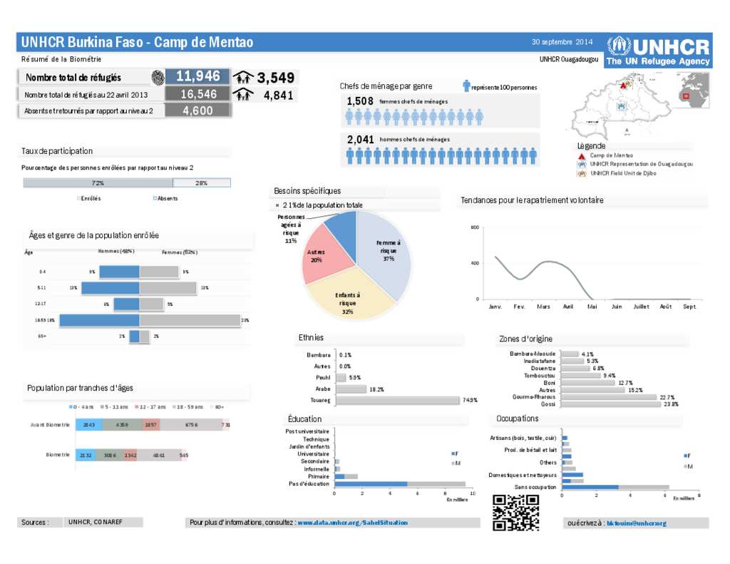 Burkina Faso: UNHCR - Dashboard du Camp de Mentao au 30 septembre 2014