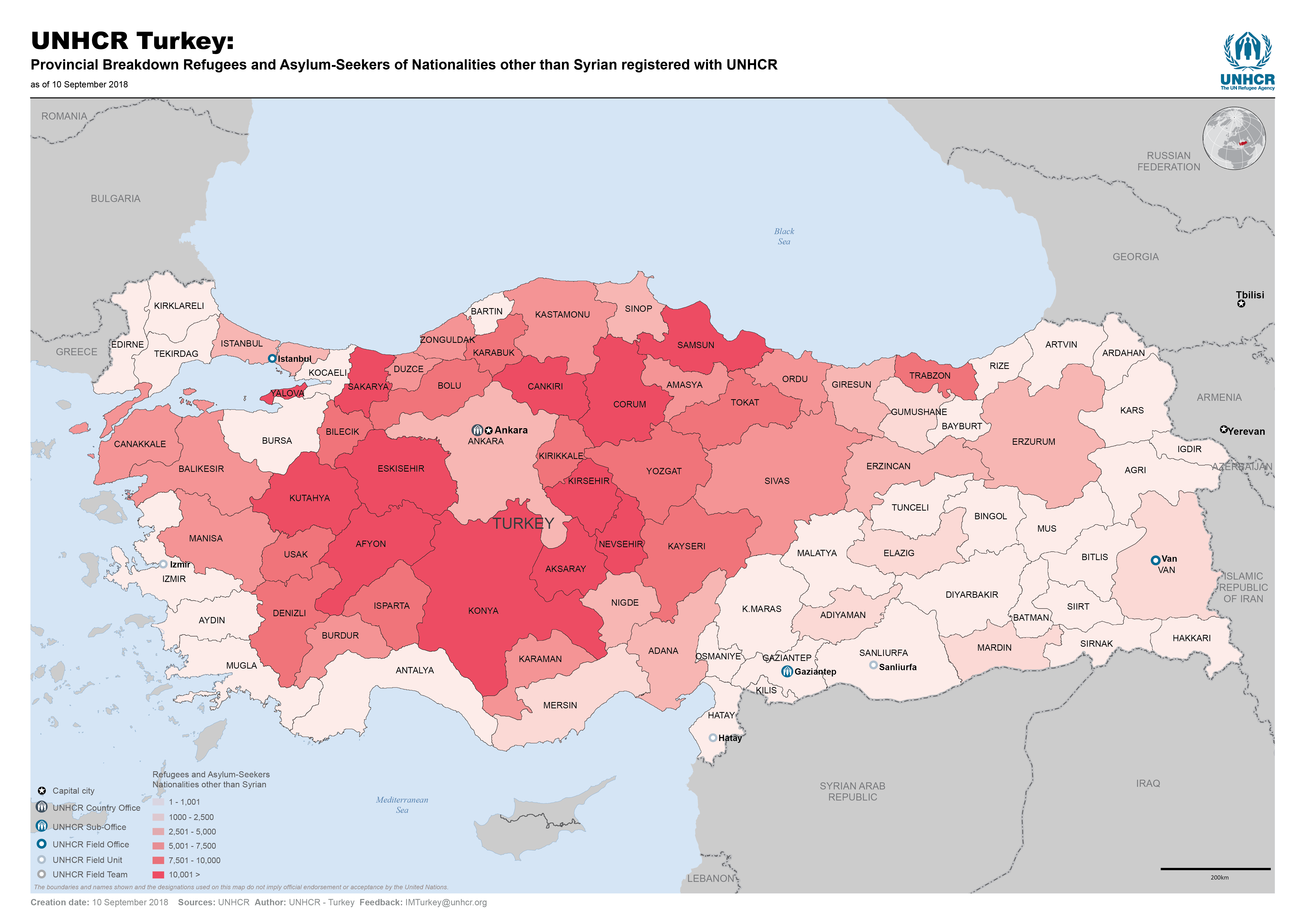 UNHCR Turkey - Provincial Breakdown Refugees and Asylum-Seekers of Nationalities other than Syrian registered with UNHCR - September 2018