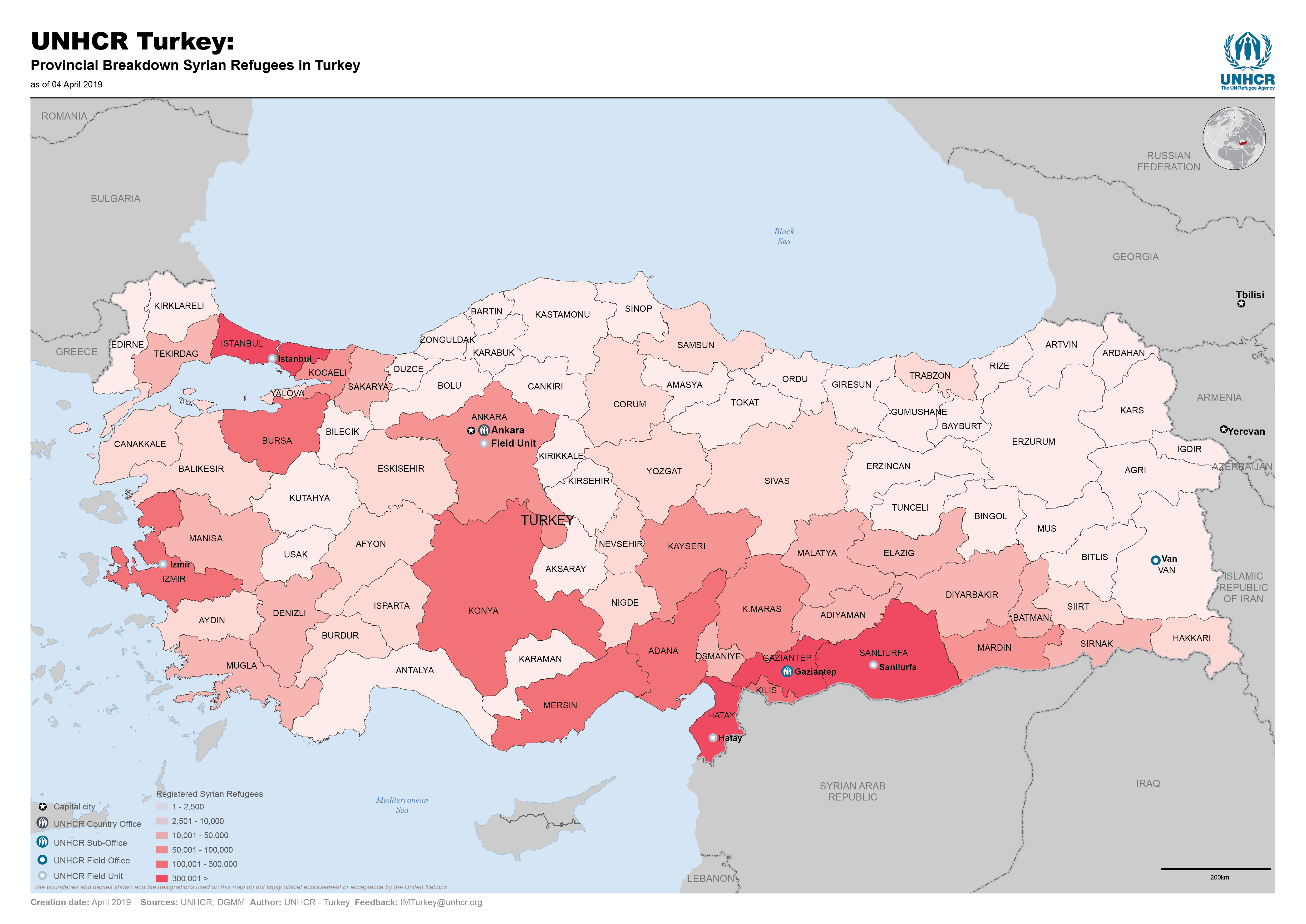 UNHCR Turkey: Provincial Breakdown Syrian Refugees in Turkey - March 2019