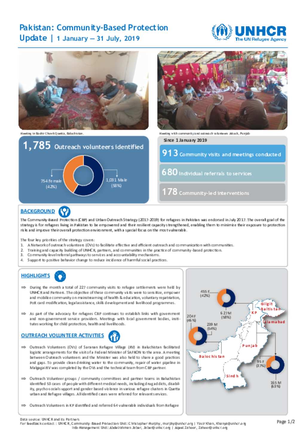 Pakistan, Community- Based Protection Update, Monthly Update (July 2019)