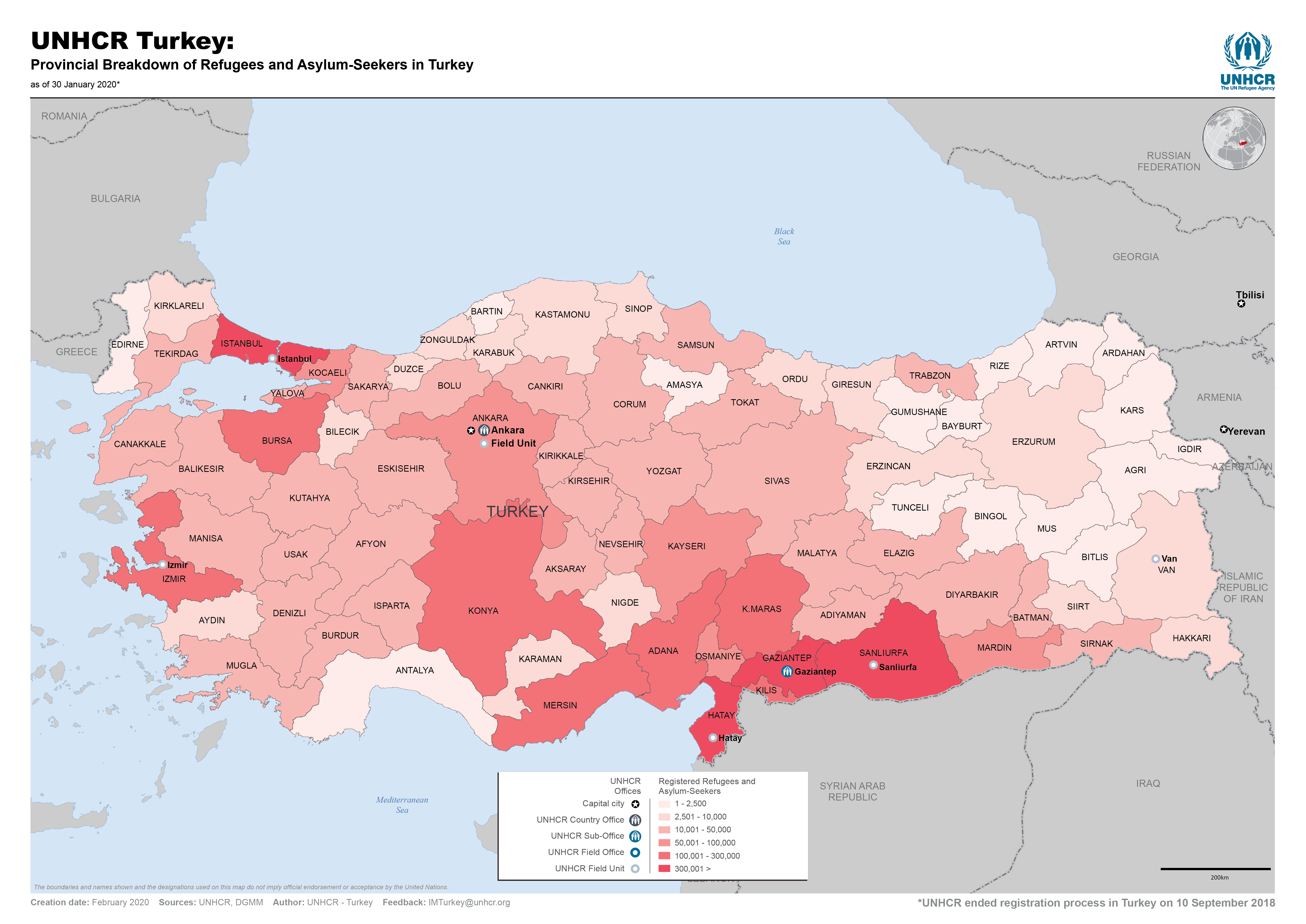 UNHCR Turkey: Provincial Breakdown All Refugees and Asylum-Seekers in Turkey - February 2020
