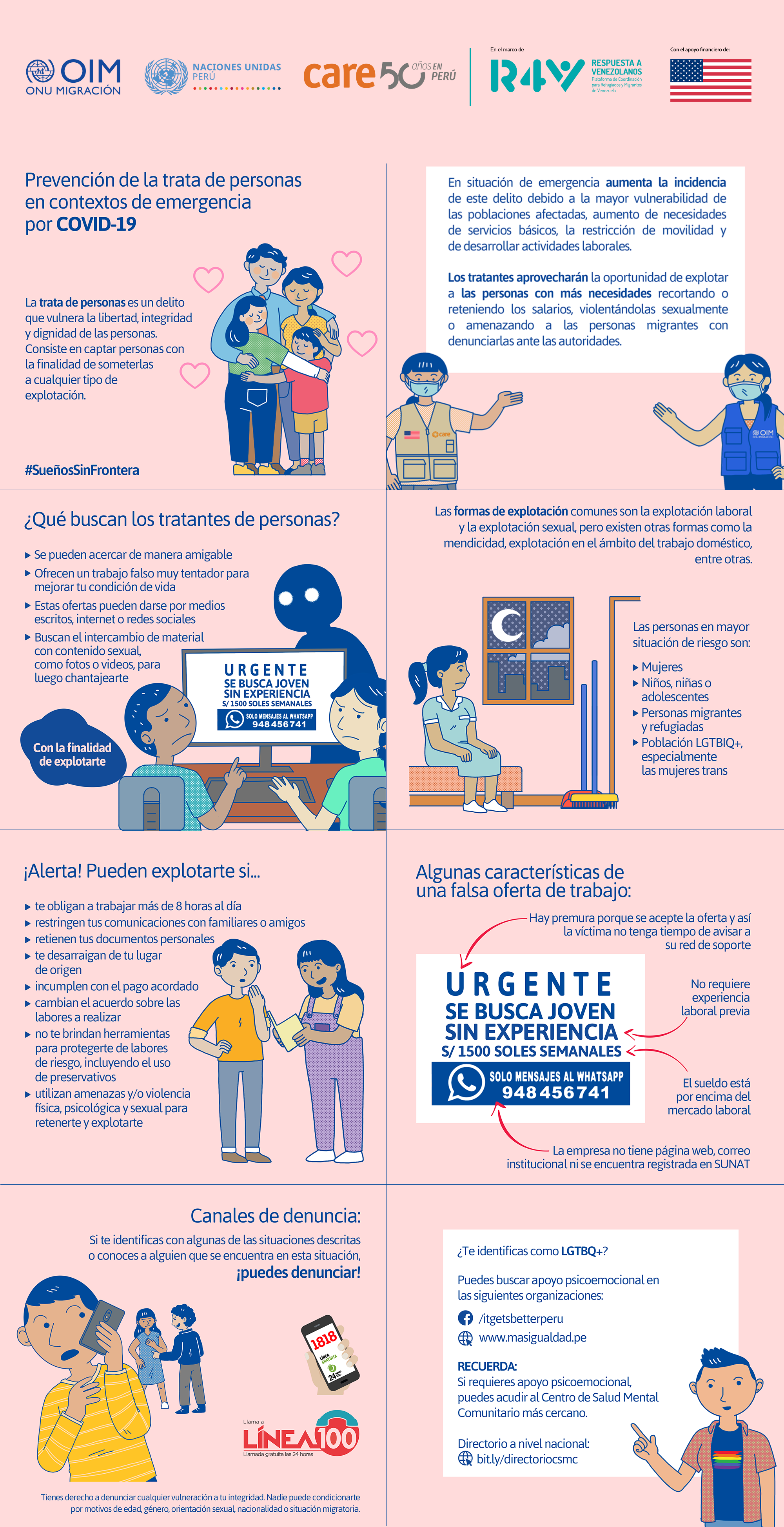 Material informativa para la prevención de trata de personas en el contexto COVID 19