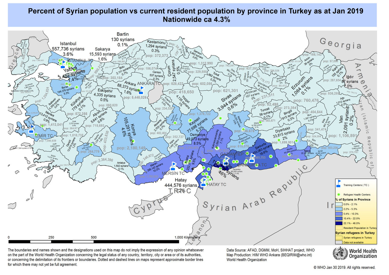 WHO Turkey: Difference of Syrian Population in Turkey with Provincial Breakdown