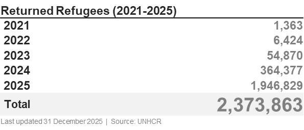 IDP Returnees data is from household-level assessments conducted by UNHCR and Partners across the country. Figures are expected to increase retroactively.