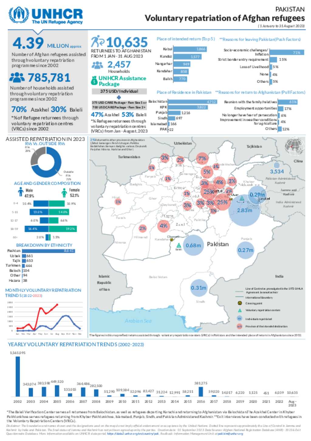 UNHCR - Pakistan Voluntary Repatriation of Afghan Refugees as of August 31, 2023