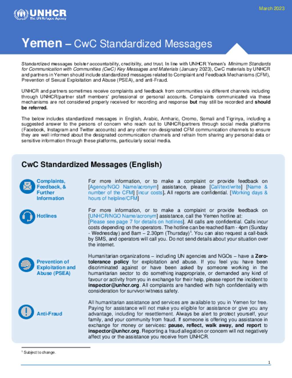 YEM_CwC Standardized Messages_March 2023_All Languages