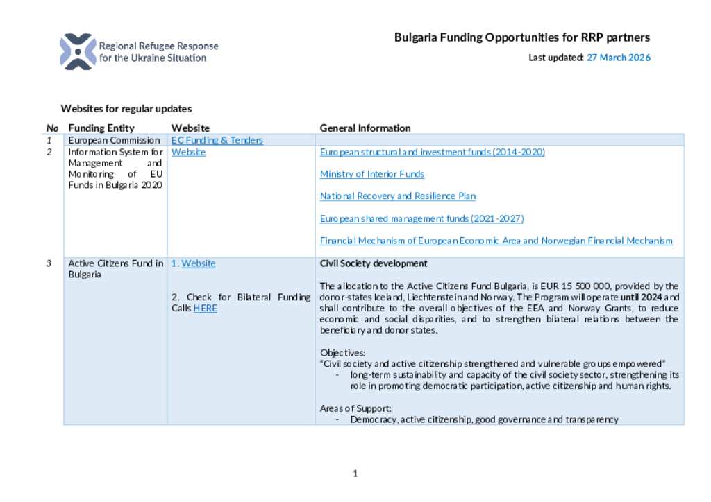 Bulgaria - Funding Opportunities for RRP partners - March 2026 update