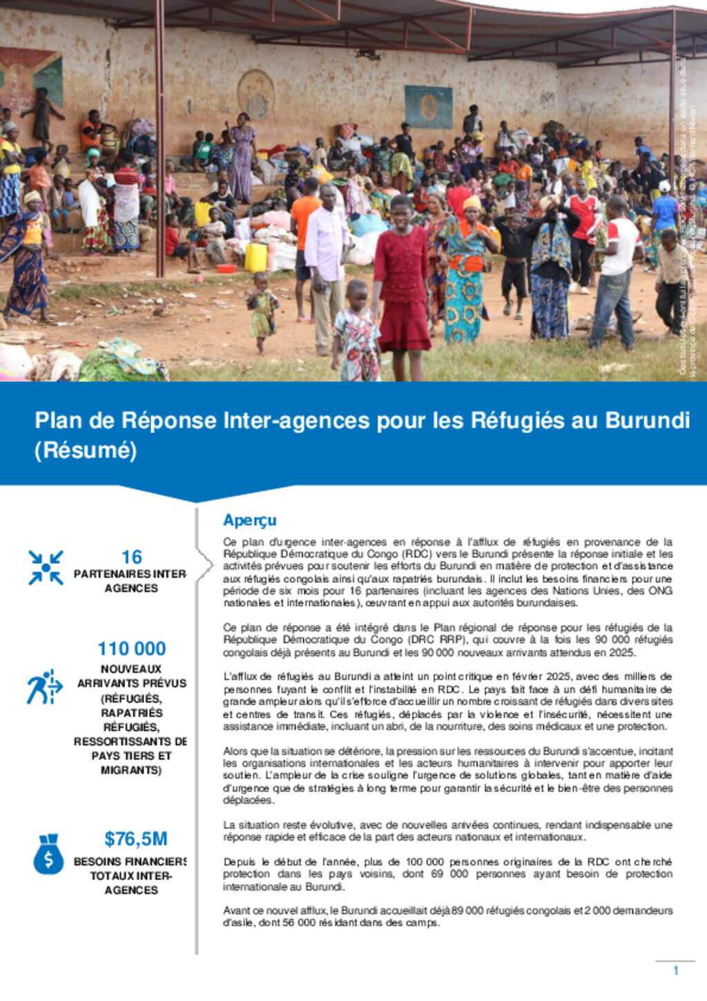 Plan de Réponse Inter-Agences pour les Réfugiés au Burundi (Résumé) - Situation RDC (mars–septembre 2025)