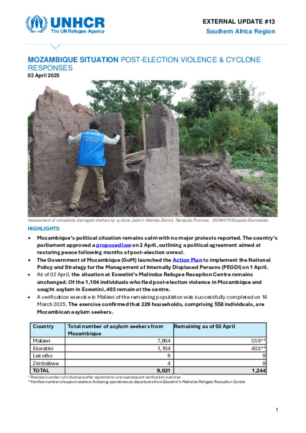Mozambique Situation: Post-Election Violence & Cyclone Responses - External Update #13 - 03 April 2025
