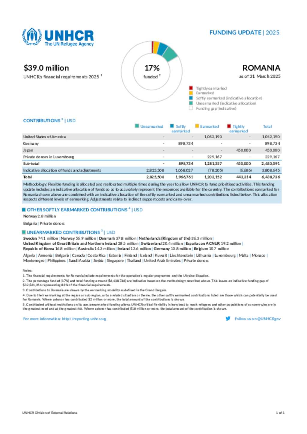 Funding Update - UNHCR Romania